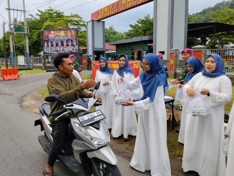 Gema Ramadhan Yonif 7 Marinir: Prajurit dan Jalasenastri Berbagi Takjil di Ketapang.