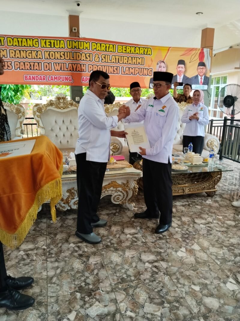 Kegiatan tersebut diawali dengan penyerahan Surat Keputusan (SK) kepengurusan Partai Berkarya Provinsi Lampung kepada Ketua DPW, Drs. H. Ali Zubaidi, S.MM, sebagai bentuk penguatan struktur organisasi partai di tingkat wilayah.
