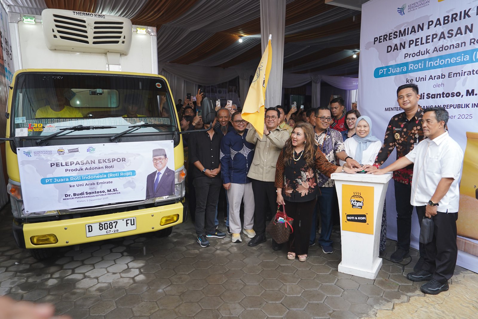 Menteri Perdagangan, Budi Santoso melepas ekspor dua ton produk adonan roti PT Juara Roti Indonesia (Roti Ropi) ke Uni Emirat Arab (UEA) yang berlangsung di Klaten, Jawa Tengah (5 Des). Produk yang akan dikirim memiliki nilai ekspor mencapai Rp200 juta.