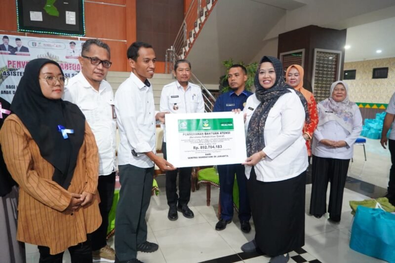Globalpewartasakti.com | PRINGSEWU (GPS) – Wakil Bupati Pringsewu Umi Laila menghadiri penyaluran bantuan program Asistensi Rehabilitasi Sosial (ATENSI) dari Kementerian Sosial RI melalui Sentra Handayani Jakarta di Lobi Kantor Bupati Pringsewu, Rabu (29/4/2026).