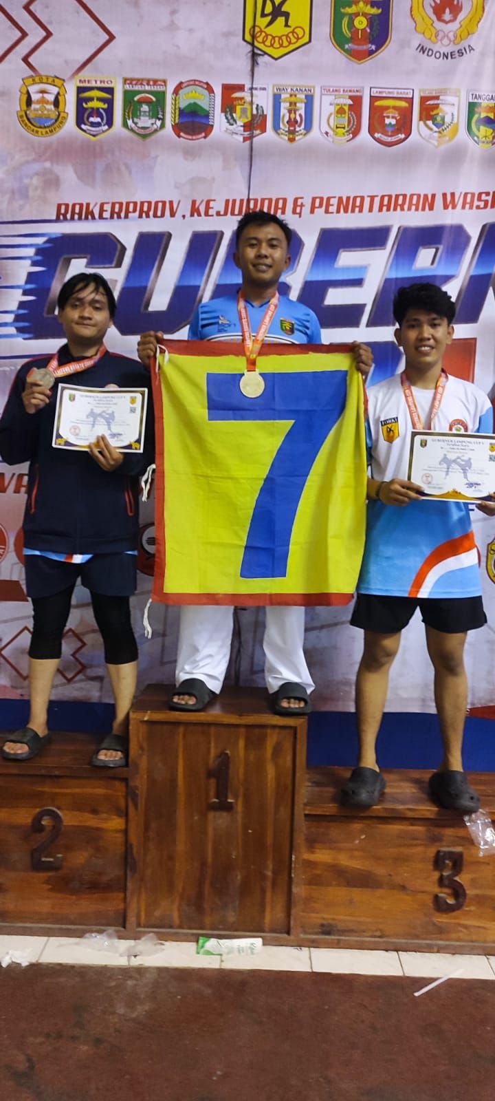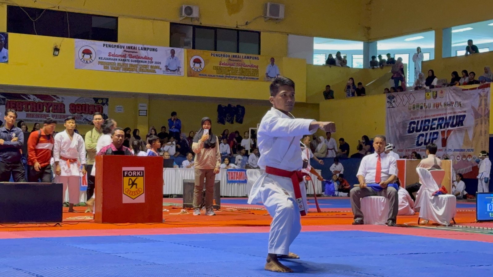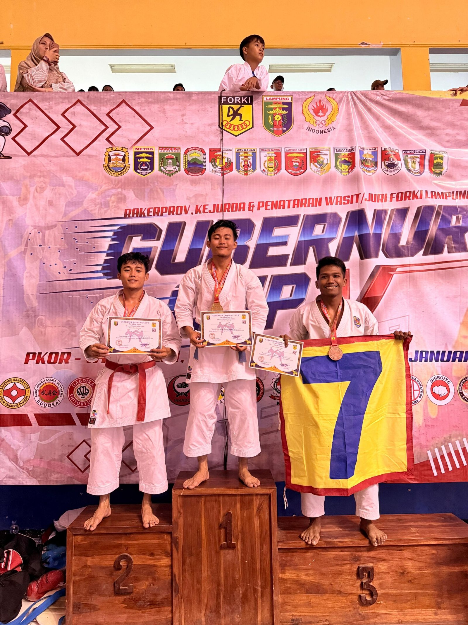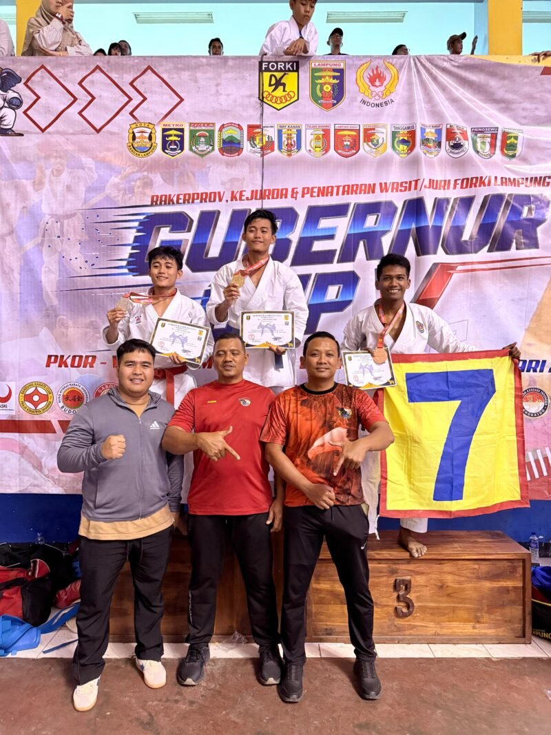 TNI AL, KORMAR, Brigif 4 Marinir/BS. Prajurit Batalyon Infanteri 7 Marinir berhasil meraih prestasi pada Kejuaraan Karate Gubernur Cup V tahun 2026 di GOR Sumpah Pemuda, PKOR, Way Halim, Bandar Lampung. Minggu (25/01/2026)