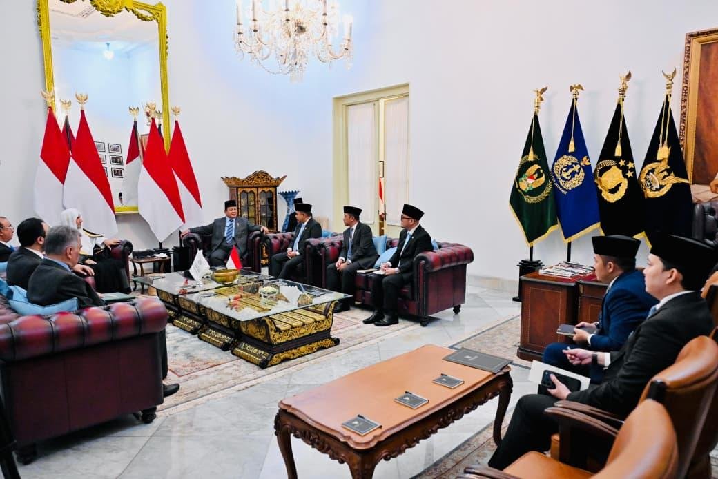 Globalpewartasakti.com | NASIONAL (GPS) – Presiden Republik Indonesia Prabowo Subianto menerima Sekretaris Jenderal Liga Muslim Dunia, Syaikh Dr. Muhammad Abdul Karim Al-Issa, dalam pertemuan yang berlangsung di Istana Merdeka, Jakarta, Kamis (04/12/2025). Dalam pertemuan tersebut, Presiden Prabowo turut didampingi oleh Ketua MPR RI Ahmad Muzani serta Wakil Menteri Haji dan Umrah Dahnil Anzar Simanjuntak.