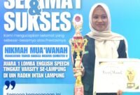 IAIDA Lampung Raih Juara 1 English Speech Competition Tingkat Varsity se-Lampung Globalpewartasakti.com | Metro (GPS). Nikmah Mua’wanah, mahasiswa Program Studi Tadris Bahasa Inggris Institut…