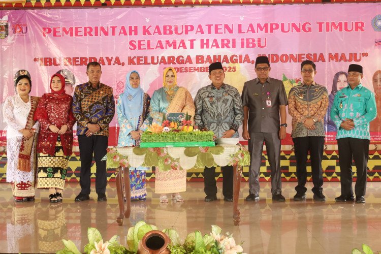 Globalpewartasakti.com | Lampung Timur (GPS) – Peringatan Hari Ibu ke-97 yang dirangkaikan dengan Resepsi Hari Ulang Tahun Dharma Wanita Persatuan (DWP) ke-26 Kabupaten Lampung Timur berlangsung penuh kehangatan dan kebersamaan. Kegiatan yang digelar di Aula Rumah Dinas Bupati Lampung Timur, Senin (22/12/2025), tersebut dihadiri dan dibuka oleh Wakil Bupati Lampung Timur, Azwar Hadi.