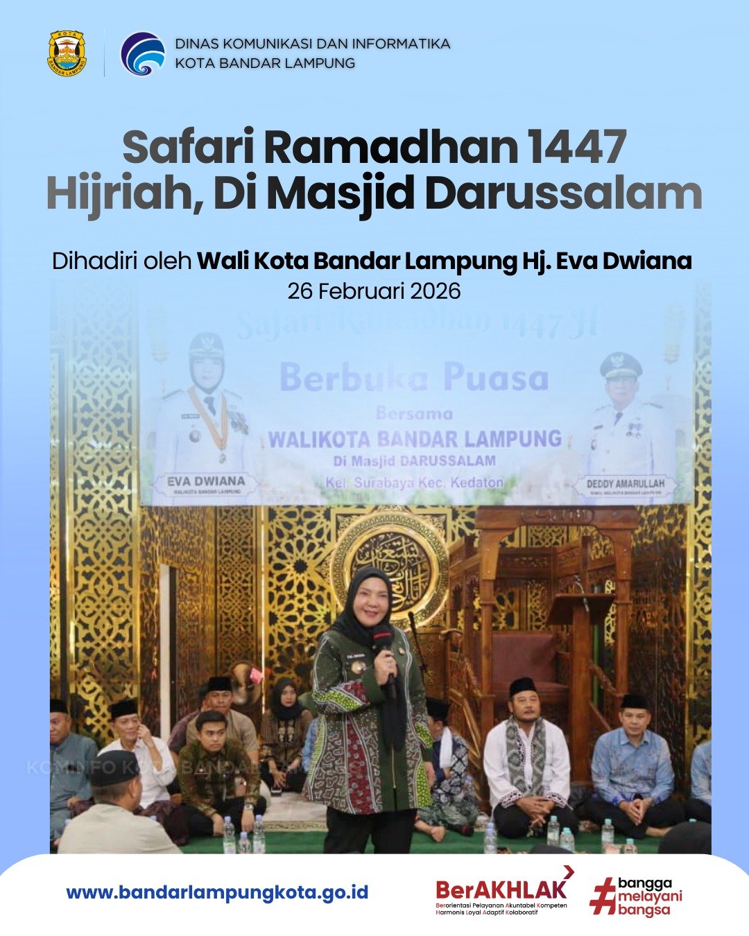 Globalpewartasakti.com | Bandar Lampung (GPS) – Pemerintah Kota (Pemkot) Bandar Lampung kembali Melaksanakan Safari Ramadhan 1447 Hijriah, Di Masjid Darussalam, Kecamatan Kedaton, Kamis (26/2/2026).
