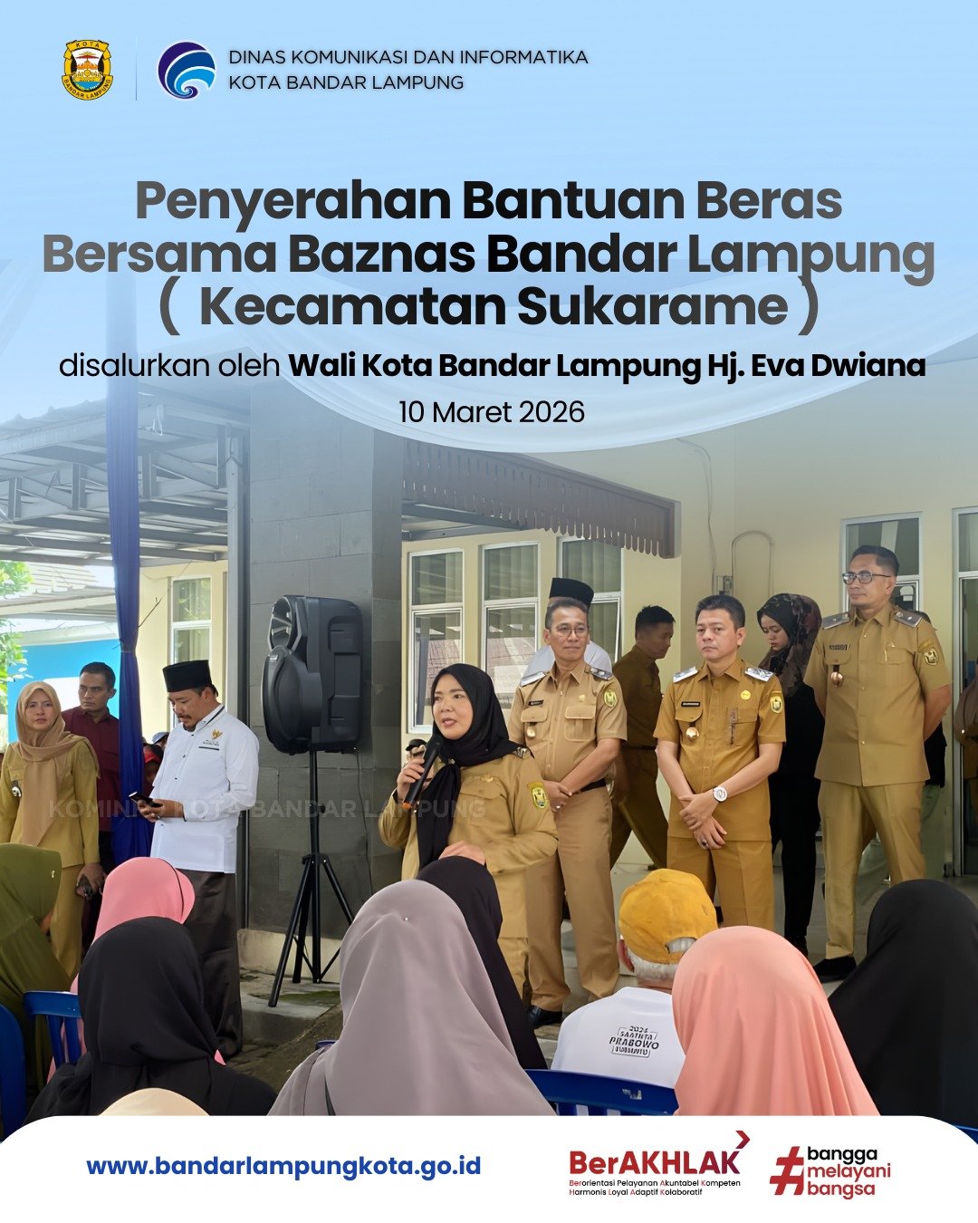 Pemerintah Kota Bandar Lampung bersama Baznas Kota Bandar Lampung menyalurkan bantuan beras kepada masyarakat sebagai bentuk kepedulian terhadap kebutuhan pangan warga.