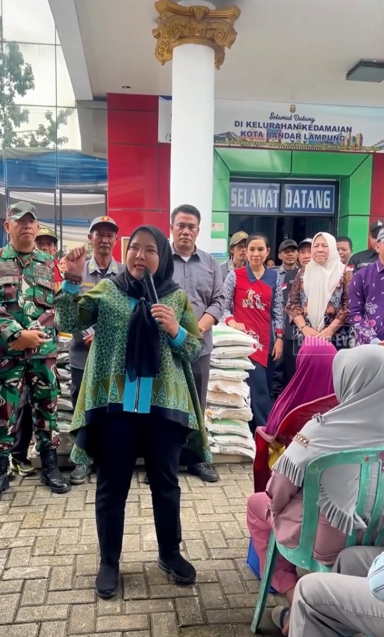 Walikota Bandar Lampung Eva Dwiana menyempatkan untuk menyerahkan langsung bantuan tersebut, untuk memastikan bantuan diterima oleh warga dan tepat sasaran.