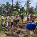 Mereka bergotong royong membangun gorong-gorong secara swadaya, Minggu (2/11/2025).